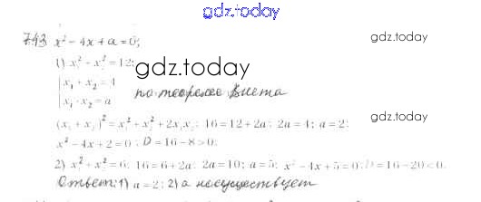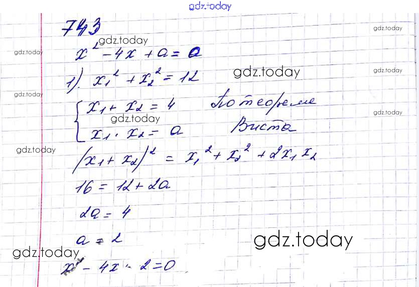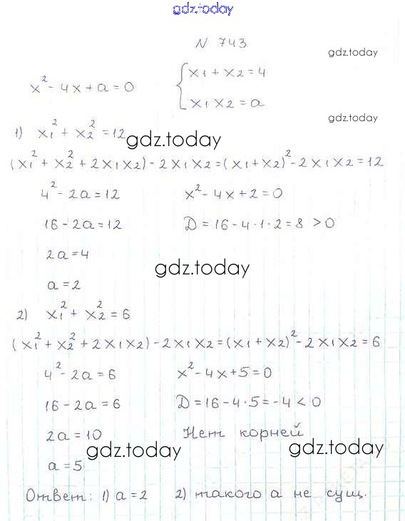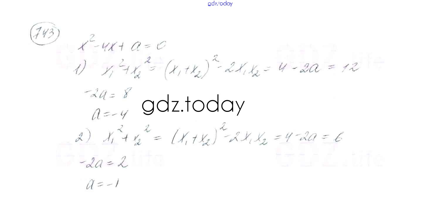 На страницах сайта gdz.today вы найдете учебный и вспомогательный материал, направленный на улучшения знаний школьной программы. ГДЗ - онлайн мир знаний §21. Теорема Виета Решение к главе 3. Квадратные уравнения 743 Учебнику по Алгебре для 8 класса Мерзляк, Полонский Вентана-граф Алгоритм успеха 2016