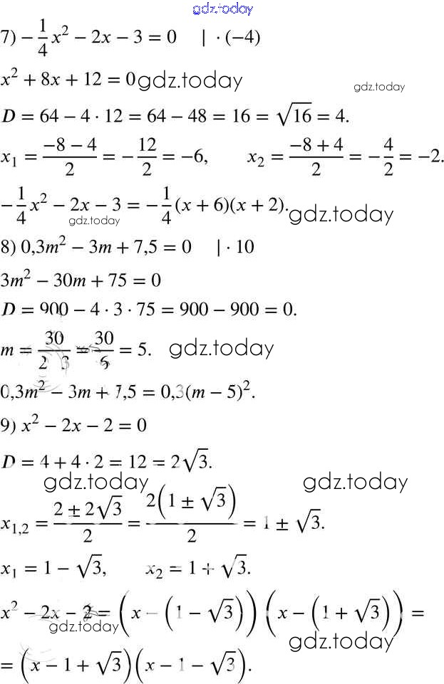 Ответы к §22. Квадратный трёхчлен Решение к главе 3. Квадратные уравнения 754 Учебнику по Алгебре для 8 класса Мерзляк, Полонский Вентана-граф Алгоритм успеха 2016