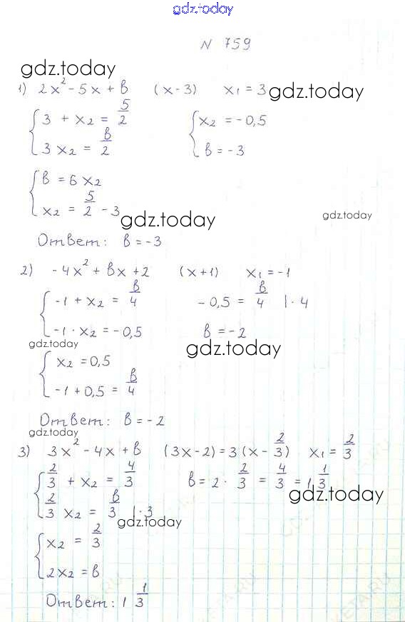 Ответы к §22. Квадратный трёхчлен Решение к главе 3. Квадратные уравнения 759 Учебнику по Алгебре для 8 класса Мерзляк, Полонский Вентана-граф Алгоритм успеха 2016
