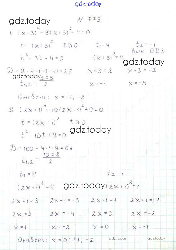 Ответы к §23. Решение уравнений, сводящихся к квадратным уравнениям Решение к главе 3. Квадратные уравнения 779 Учебнику по Алгебре для 8 класса Мерзляк, Полонский Вентана-граф Алгоритм успеха 2016