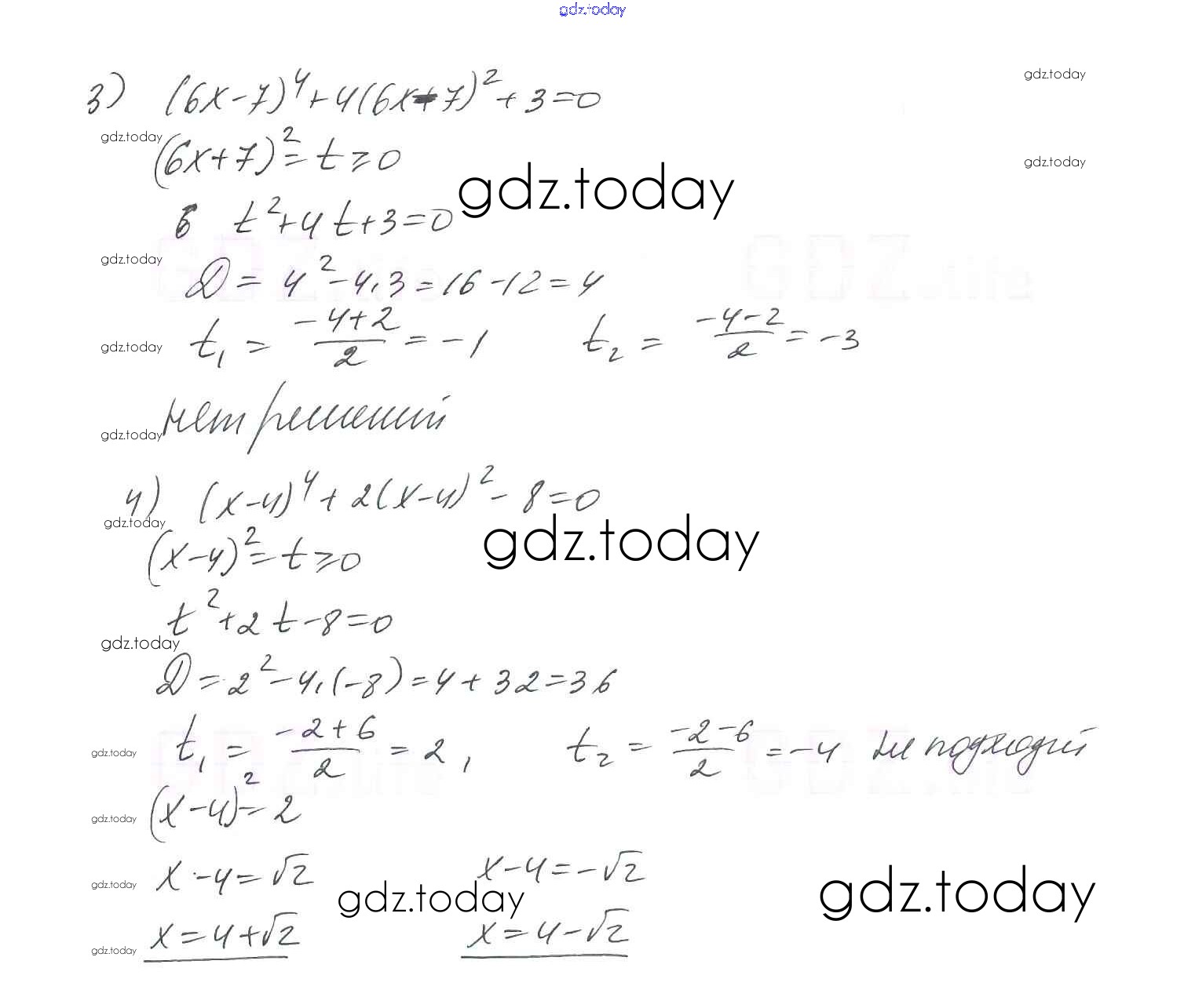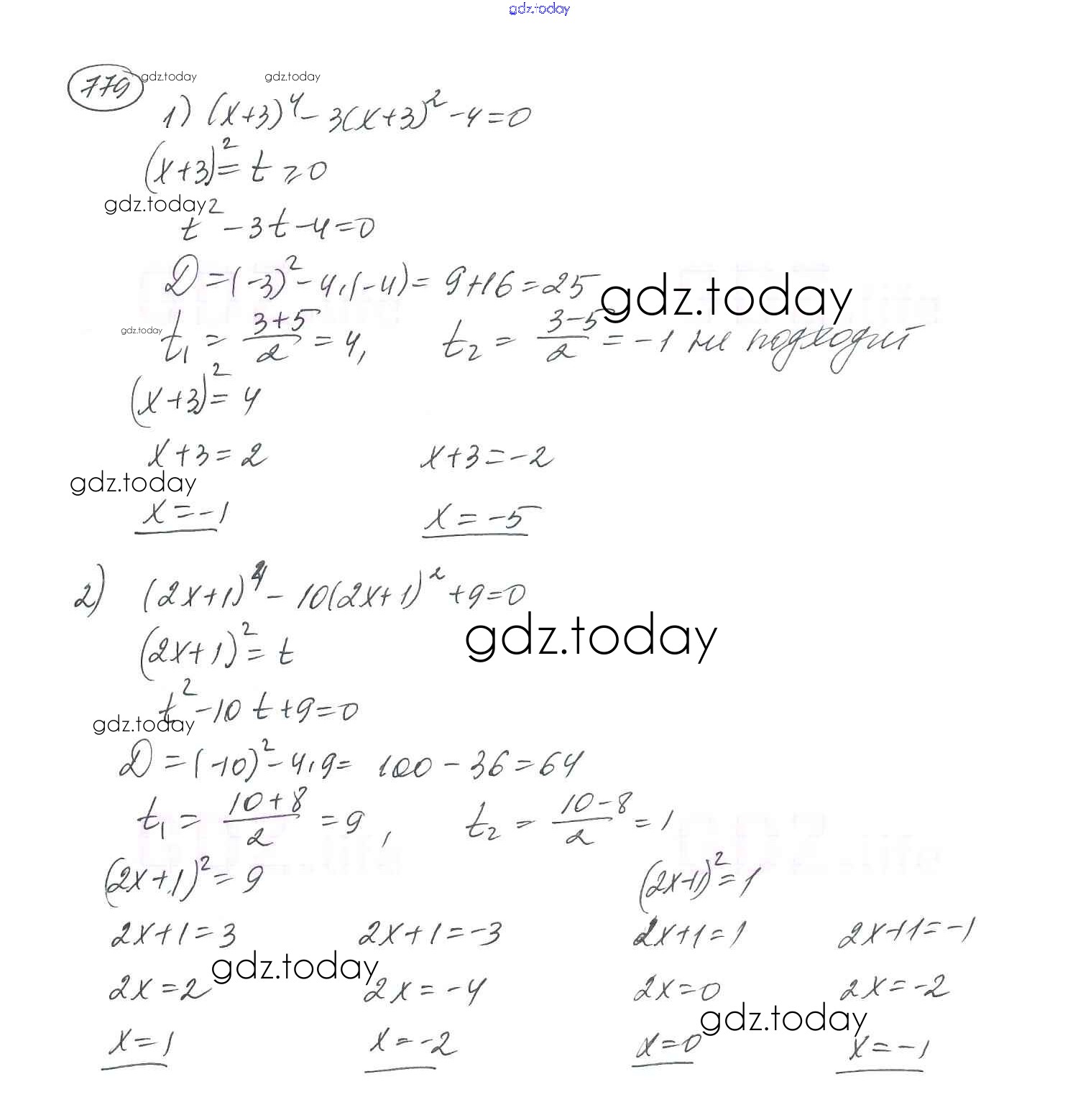 На страницах сайта gdz.today вы найдете учебный и вспомогательный материал, направленный на улучшения знаний школьной программы. ГДЗ - онлайн мир знаний §23. Решение уравнений, сводящихся к квадратным уравнениям Решение к главе 3. Квадратные уравнения 779 Учебнику по Алгебре для 8 класса Мерзляк, Полонский Вентана-граф Алгоритм успеха 2016