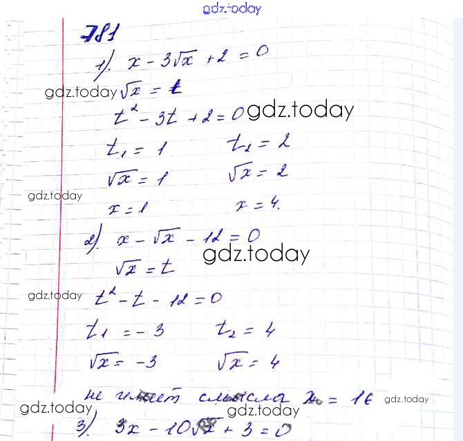 На страницах сайта gdz.today вы найдете учебный и вспомогательный материал, направленный на улучшения знаний школьной программы. ГДЗ - онлайн мир знаний §23. Решение уравнений, сводящихся к квадратным уравнениям Решение к главе 3. Квадратные уравнения 781 Учебнику по Алгебре для 8 класса Мерзляк, Полонский Вентана-граф Алгоритм успеха 2016