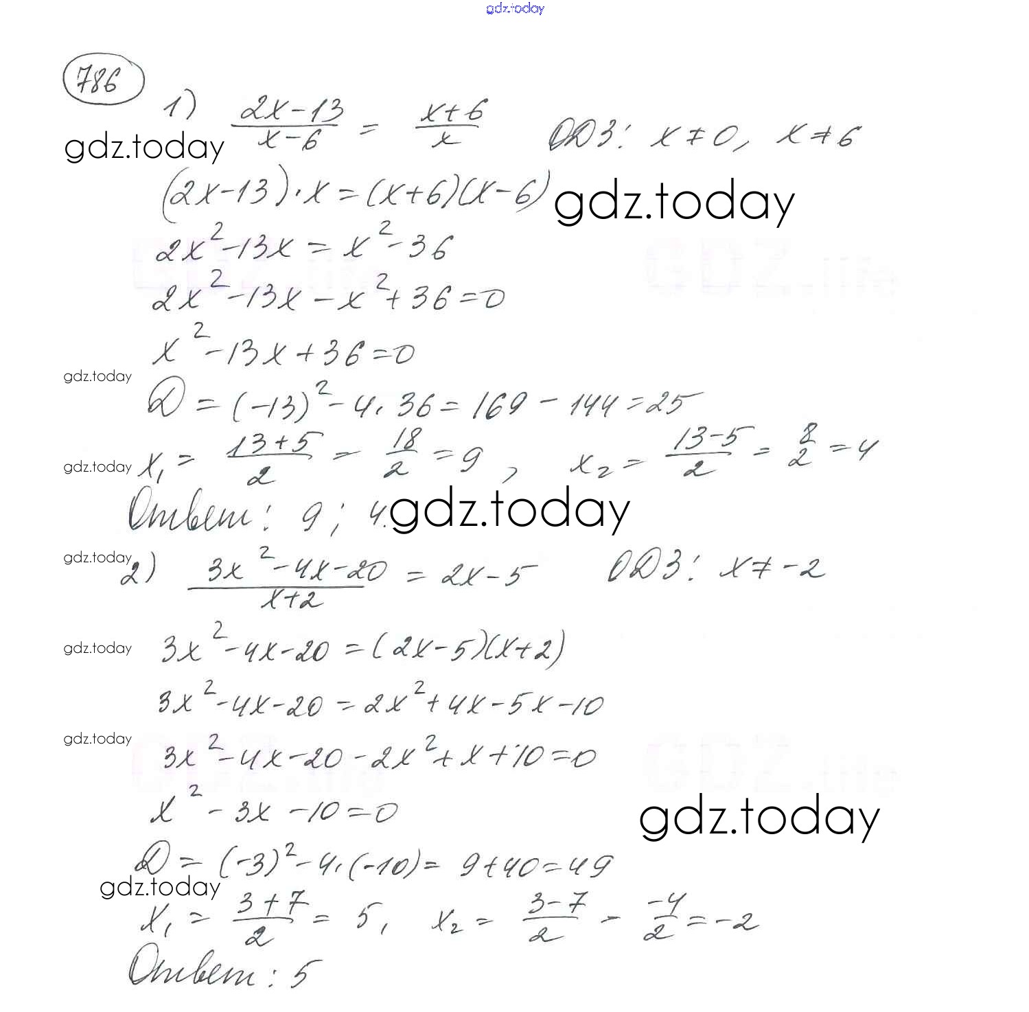 На страницах сайта gdz.today вы найдете учебный и вспомогательный материал, направленный на улучшения знаний школьной программы. ГДЗ - онлайн мир знаний §23. Решение уравнений, сводящихся к квадратным уравнениям Решение к главе 3. Квадратные уравнения 786 Учебнику по Алгебре для 8 класса Мерзляк, Полонский Вентана-граф Алгоритм успеха 2016