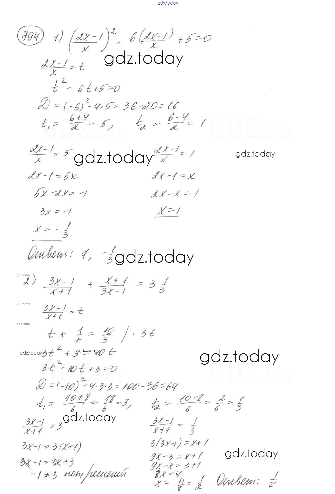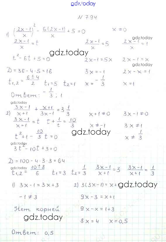 Ответы к §23. Решение уравнений, сводящихся к квадратным уравнениям Решение к главе 3. Квадратные уравнения 794 Учебнику по Алгебре для 8 класса Мерзляк, Полонский Вентана-граф Алгоритм успеха 2016