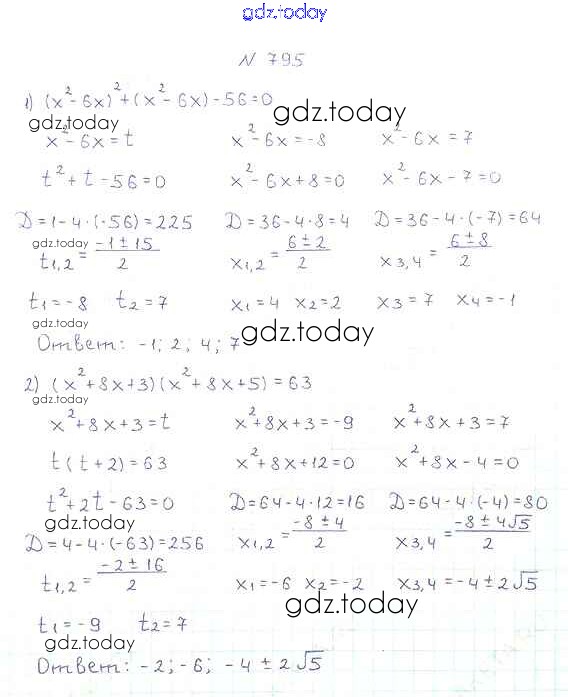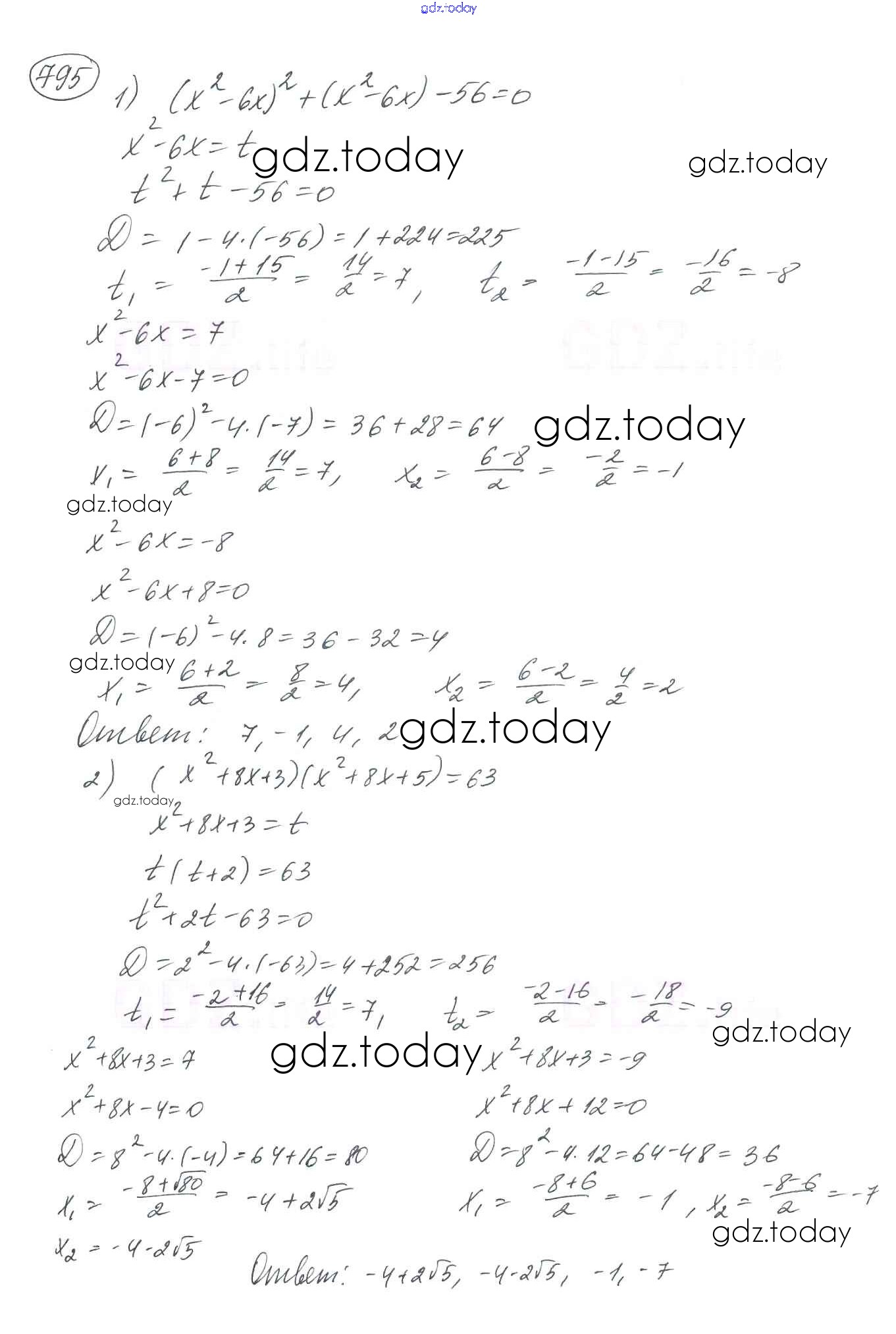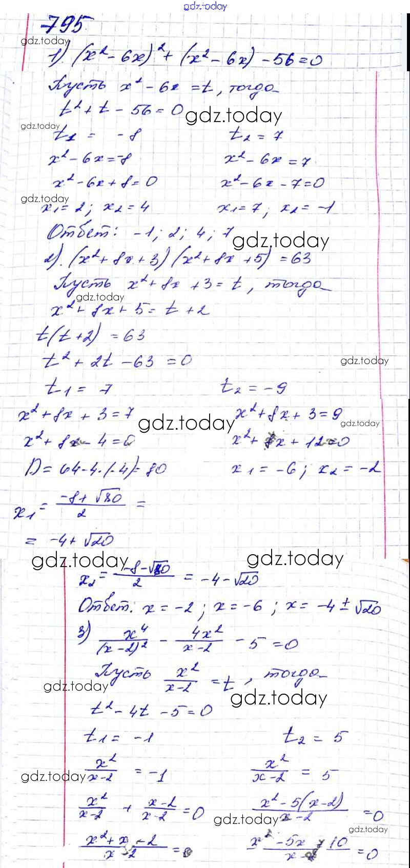 На страницах сайта gdz.today вы найдете учебный и вспомогательный материал, направленный на улучшения знаний школьной программы. ГДЗ - онлайн мир знаний §23. Решение уравнений, сводящихся к квадратным уравнениям Решение к главе 3. Квадратные уравнения 795 Учебнику по Алгебре для 8 класса Мерзляк, Полонский Вентана-граф Алгоритм успеха 2016