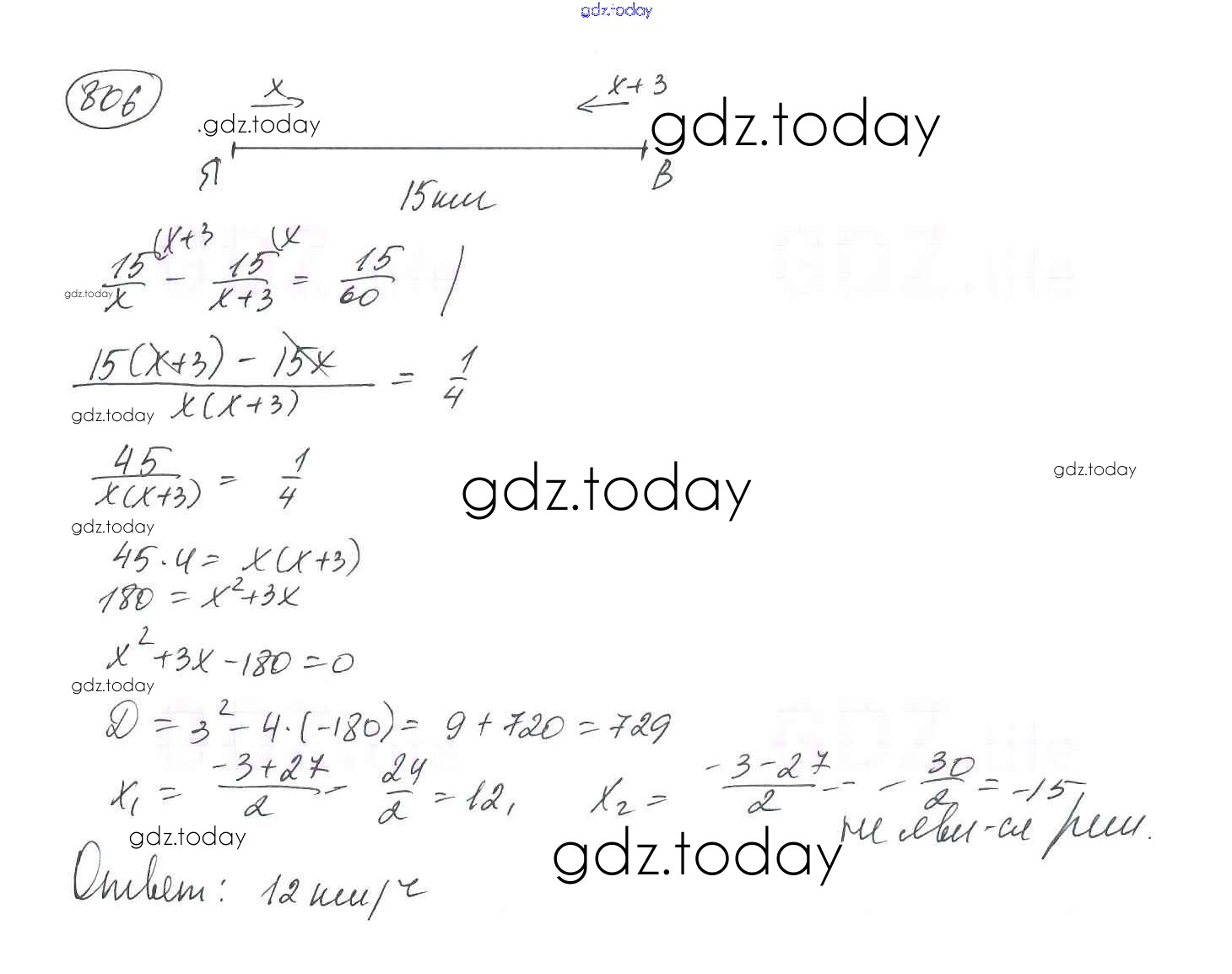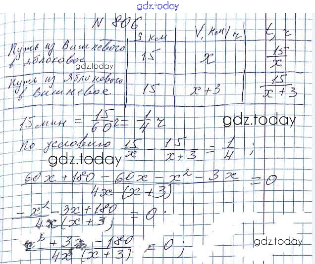 На страницах сайта gdz.today вы найдете учебный и вспомогательный материал, направленный на улучшения знаний школьной программы. ГДЗ - онлайн мир знаний §24. Рациональные уравнения как математические модели реальных ситуаций Решение к главе 3. Квадратные уравнения 806 Учебнику по Алгебре для 8 класса Мерзляк, Полонский Вентана-граф Алгоритм успеха 2016