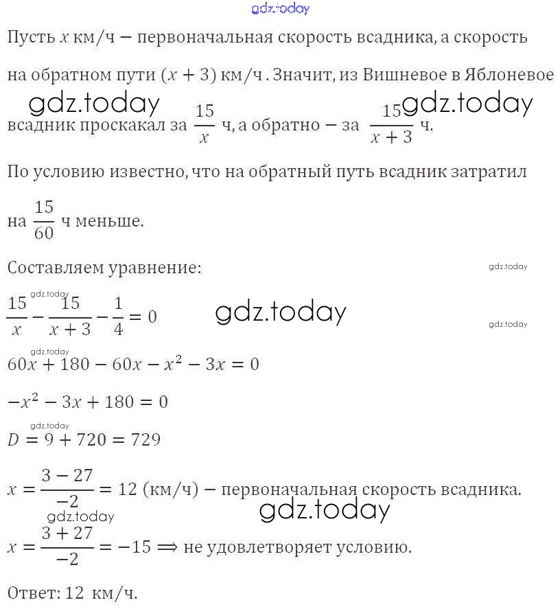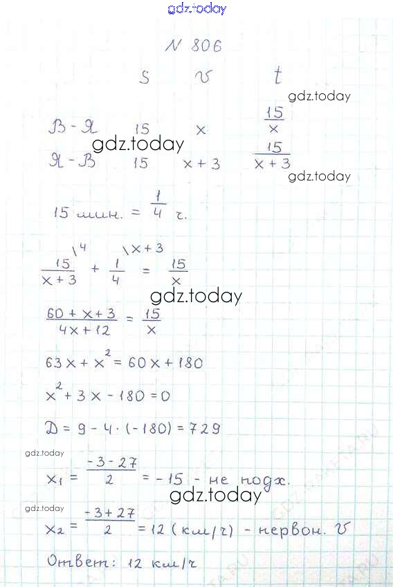 Ответы к §24. Рациональные уравнения как математические модели реальных ситуаций Решение к главе 3. Квадратные уравнения 806 Учебнику по Алгебре для 8 класса Мерзляк, Полонский Вентана-граф Алгоритм успеха 2016