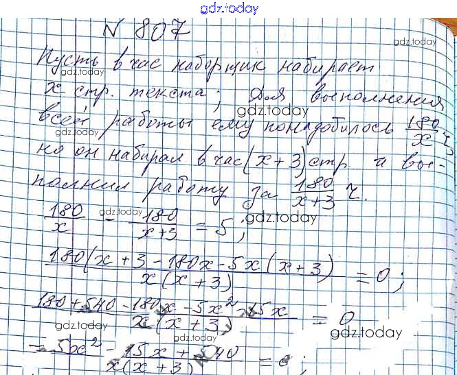 На страницах сайта gdz.today вы найдете учебный и вспомогательный материал, направленный на улучшения знаний школьной программы. ГДЗ - онлайн мир знаний §24. Рациональные уравнения как математические модели реальных ситуаций Решение к главе 3. Квадратные уравнения 807 Учебнику по Алгебре для 8 класса Мерзляк, Полонский Вентана-граф Алгоритм успеха 2016