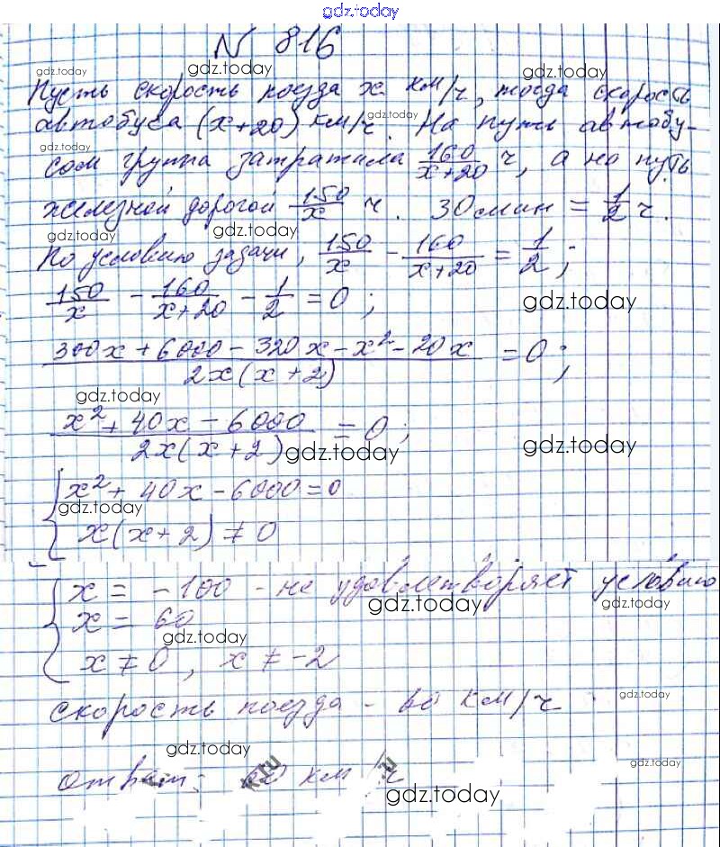 На страницах сайта gdz.today вы найдете учебный и вспомогательный материал, направленный на улучшения знаний школьной программы. ГДЗ - онлайн мир знаний §24. Рациональные уравнения как математические модели реальных ситуаций Решение к главе 3. Квадратные уравнения 816 Учебнику по Алгебре для 8 класса Мерзляк, Полонский Вентана-граф Алгоритм успеха 2016