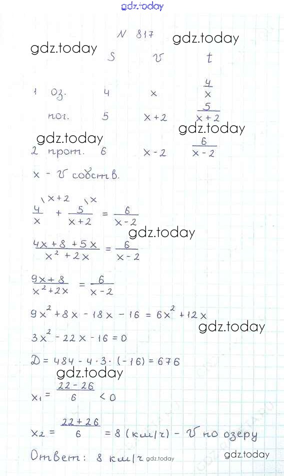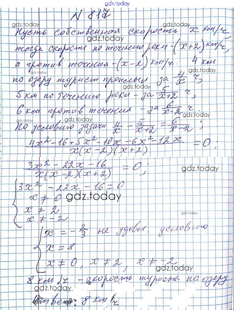 На страницах сайта gdz.today вы найдете учебный и вспомогательный материал, направленный на улучшения знаний школьной программы. ГДЗ - онлайн мир знаний §24. Рациональные уравнения как математические модели реальных ситуаций Решение к главе 3. Квадратные уравнения 817 Учебнику по Алгебре для 8 класса Мерзляк, Полонский Вентана-граф Алгоритм успеха 2016