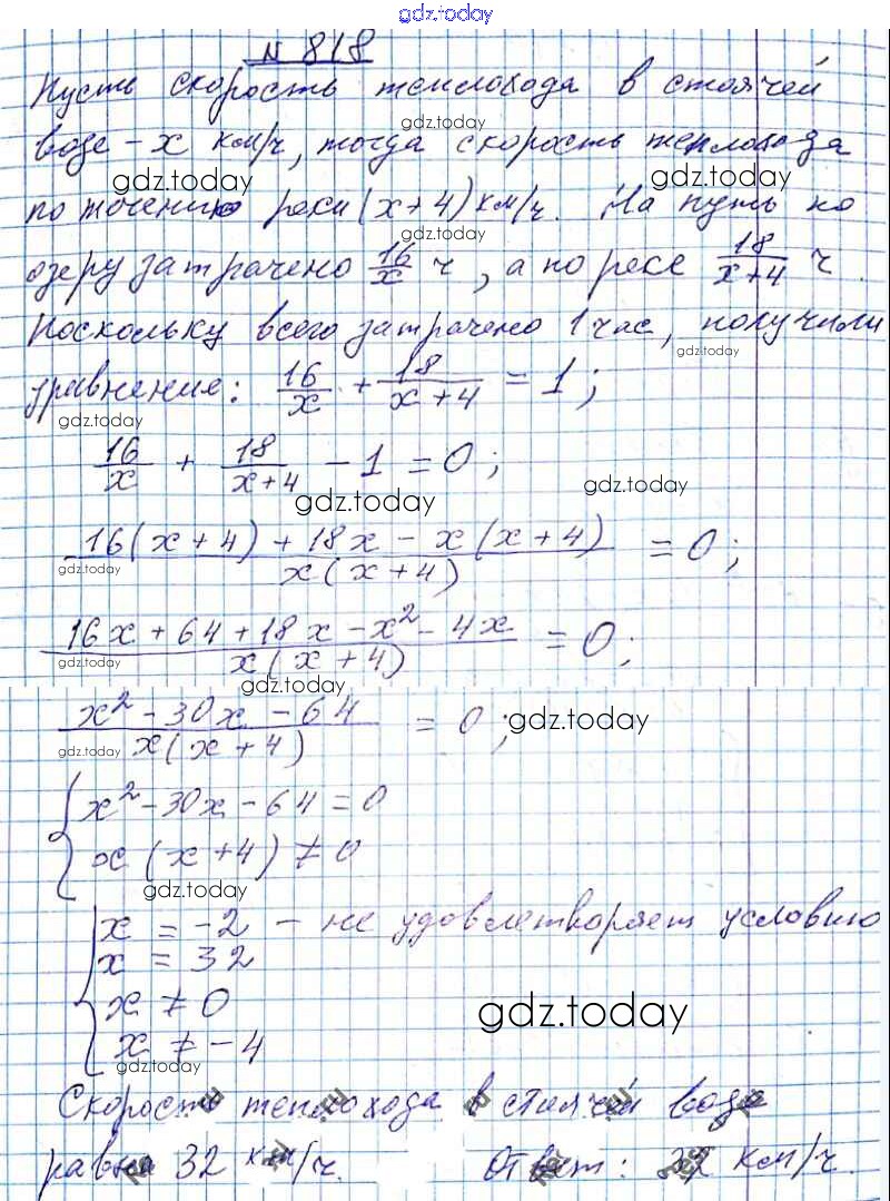 На страницах сайта gdz.today вы найдете учебный и вспомогательный материал, направленный на улучшения знаний школьной программы. ГДЗ - онлайн мир знаний §24. Рациональные уравнения как математические модели реальных ситуаций Решение к главе 3. Квадратные уравнения 818 Учебнику по Алгебре для 8 класса Мерзляк, Полонский Вентана-граф Алгоритм успеха 2016