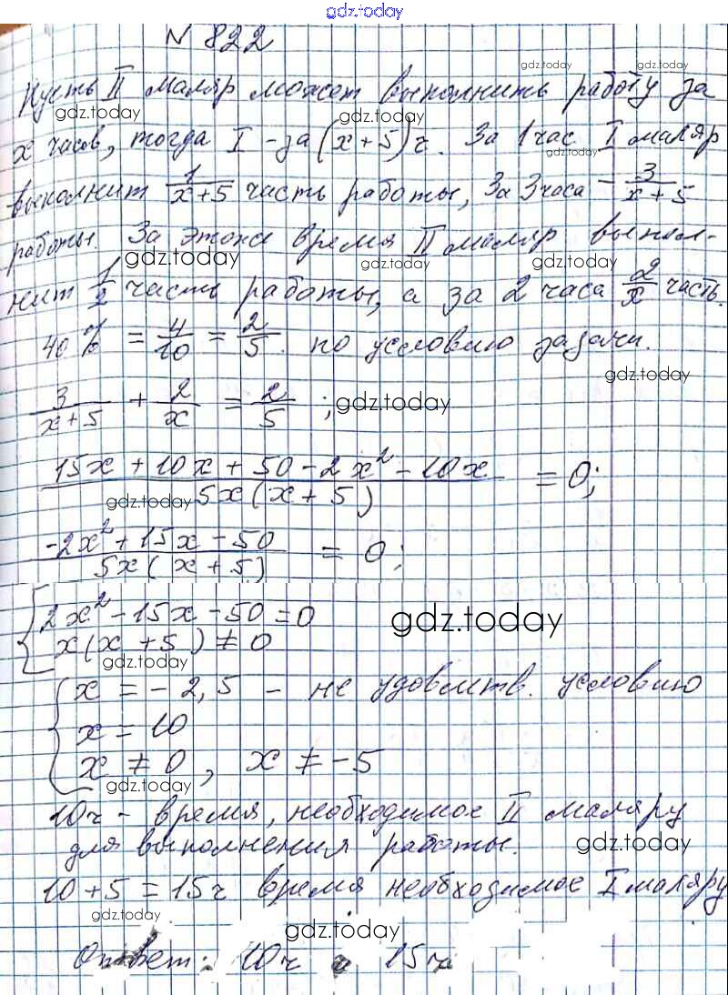 На страницах сайта gdz.today вы найдете учебный и вспомогательный материал, направленный на улучшения знаний школьной программы. ГДЗ - онлайн мир знаний §24. Рациональные уравнения как математические модели реальных ситуаций Решение к главе 3. Квадратные уравнения 822 Учебнику по Алгебре для 8 класса Мерзляк, Полонский Вентана-граф Алгоритм успеха 2016