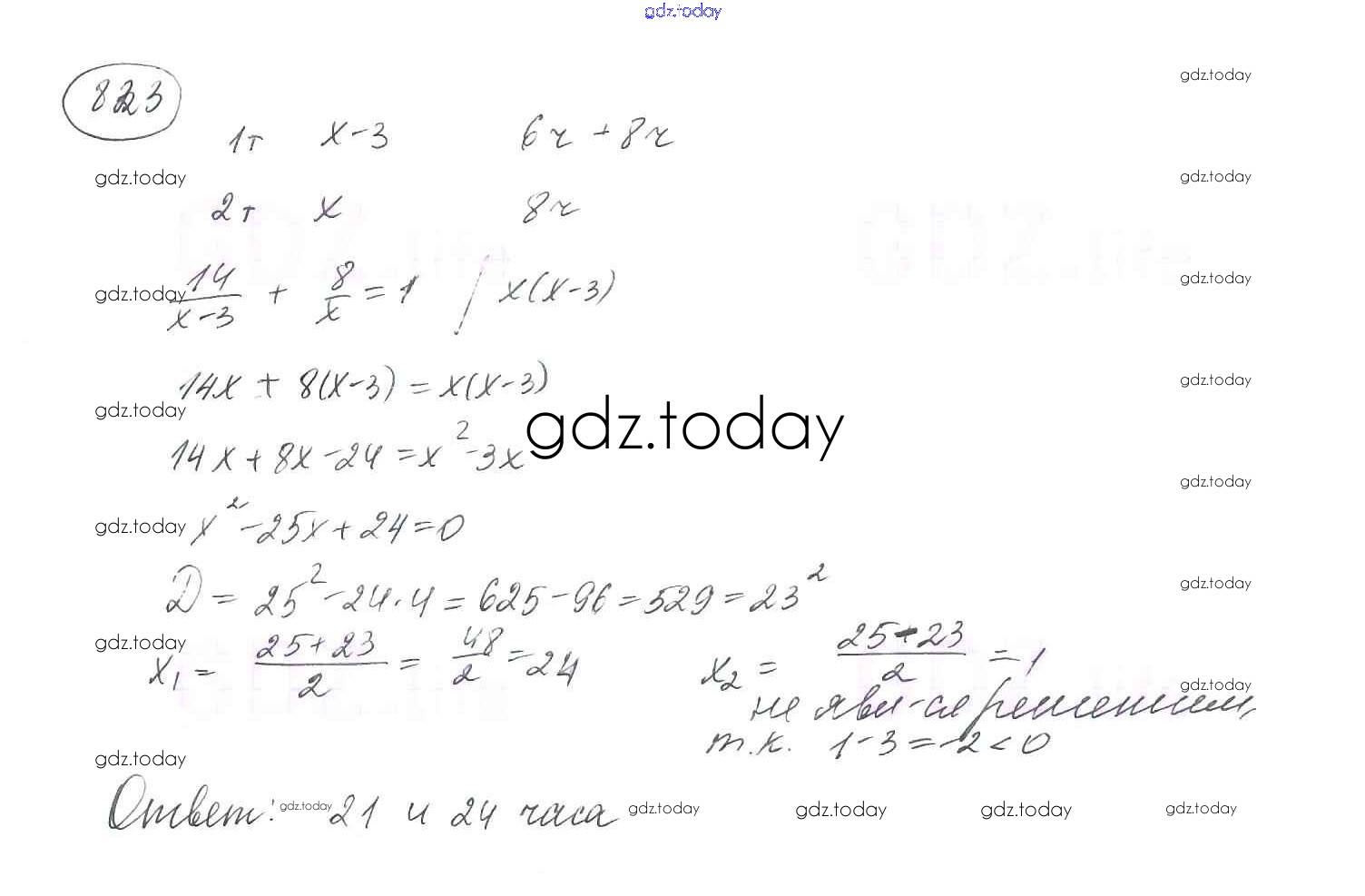 На страницах сайта gdz.today вы найдете учебный и вспомогательный материал, направленный на улучшения знаний школьной программы. ГДЗ - онлайн мир знаний §24. Рациональные уравнения как математические модели реальных ситуаций Решение к главе 3. Квадратные уравнения 823 Учебнику по Алгебре для 8 класса Мерзляк, Полонский Вентана-граф Алгоритм успеха 2016