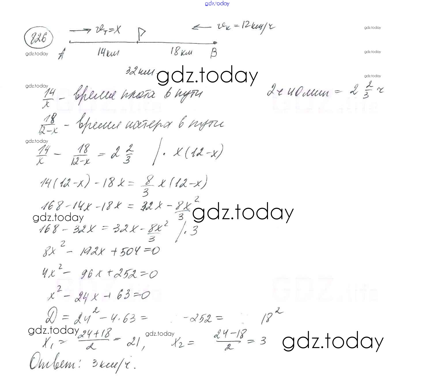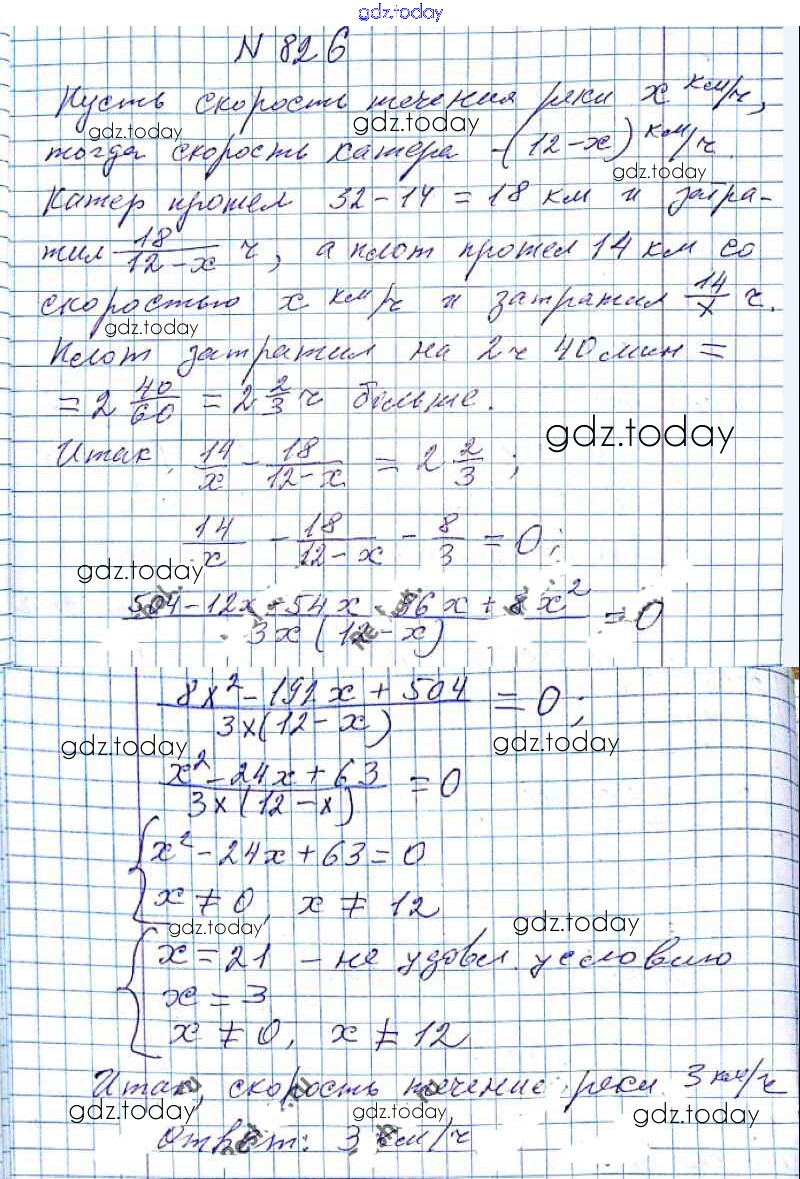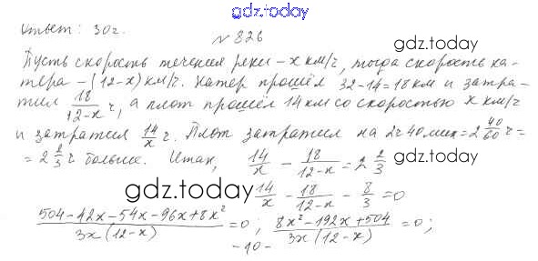 На страницах сайта gdz.today вы найдете учебный и вспомогательный материал, направленный на улучшения знаний школьной программы. ГДЗ - онлайн мир знаний §24. Рациональные уравнения как математические модели реальных ситуаций Решение к главе 3. Квадратные уравнения 826 Учебнику по Алгебре для 8 класса Мерзляк, Полонский Вентана-граф Алгоритм успеха 2016