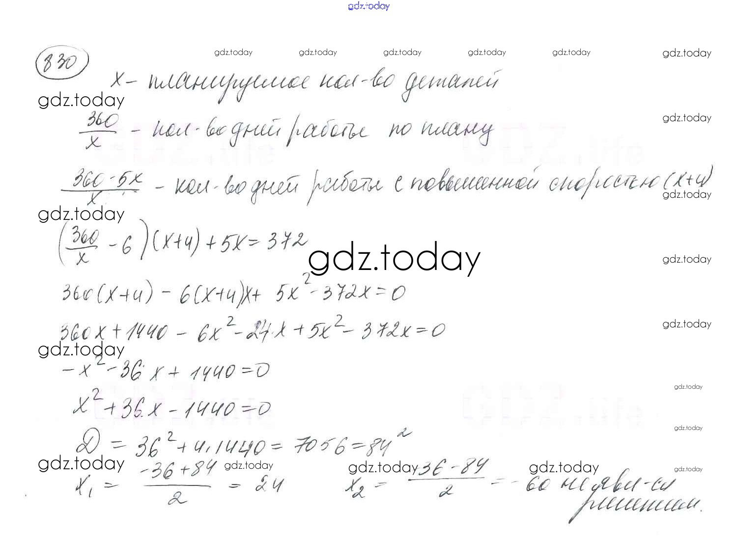 На страницах сайта gdz.today вы найдете учебный и вспомогательный материал, направленный на улучшения знаний школьной программы. ГДЗ - онлайн мир знаний §24. Рациональные уравнения как математические модели реальных ситуаций Решение к главе 3. Квадратные уравнения 830 Учебнику по Алгебре для 8 класса Мерзляк, Полонский Вентана-граф Алгоритм успеха 2016