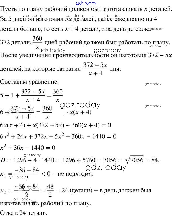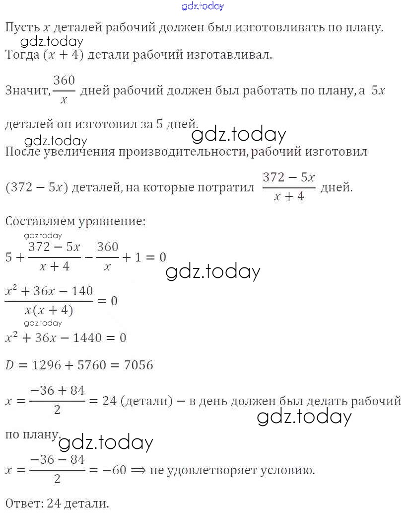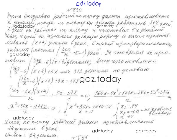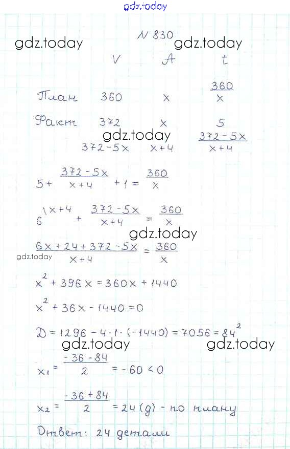 Ответы к §24. Рациональные уравнения как математические модели реальных ситуаций Решение к главе 3. Квадратные уравнения 830 Учебнику по Алгебре для 8 класса Мерзляк, Полонский Вентана-граф Алгоритм успеха 2016