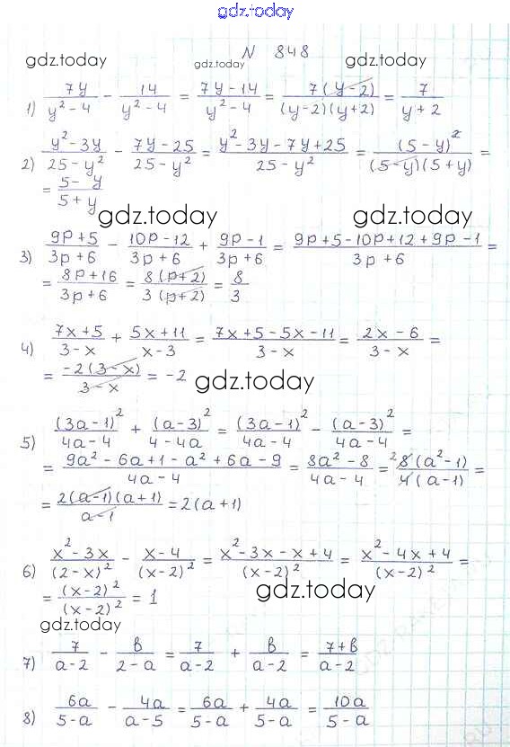 Ответы к Упражнения для повторения курса алгебры 8 класса 848 Учебнику по Алгебре для 8 класса Мерзляк, Полонский Вентана-граф Алгоритм успеха 2016