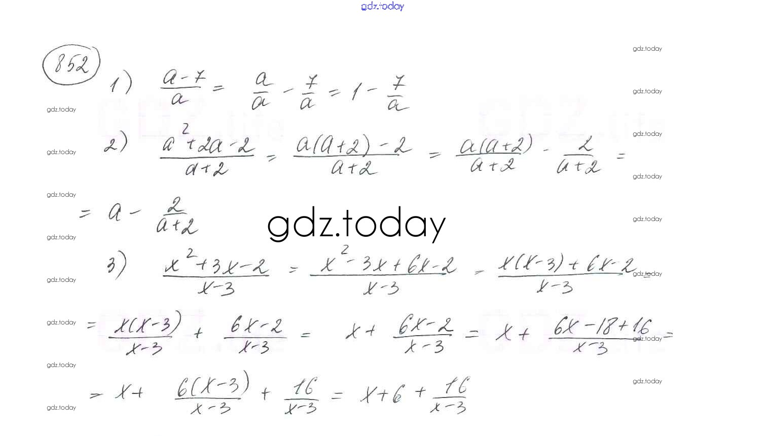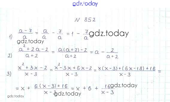 На страницах сайта gdz.today вы найдете учебный и вспомогательный материал, направленный на улучшения знаний школьной программы. ГДЗ - онлайн мир знаний Упражнения для повторения курса алгебры 8 класса 852 Учебнику по Алгебре для 8 класса Мерзляк, Полонский Вентана-граф Алгоритм успеха 2016
