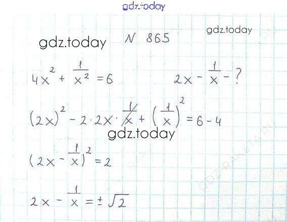 Ответы к Упражнения для повторения курса алгебры 8 класса 865 Учебнику по Алгебре для 8 класса Мерзляк, Полонский Вентана-граф Алгоритм успеха 2016
