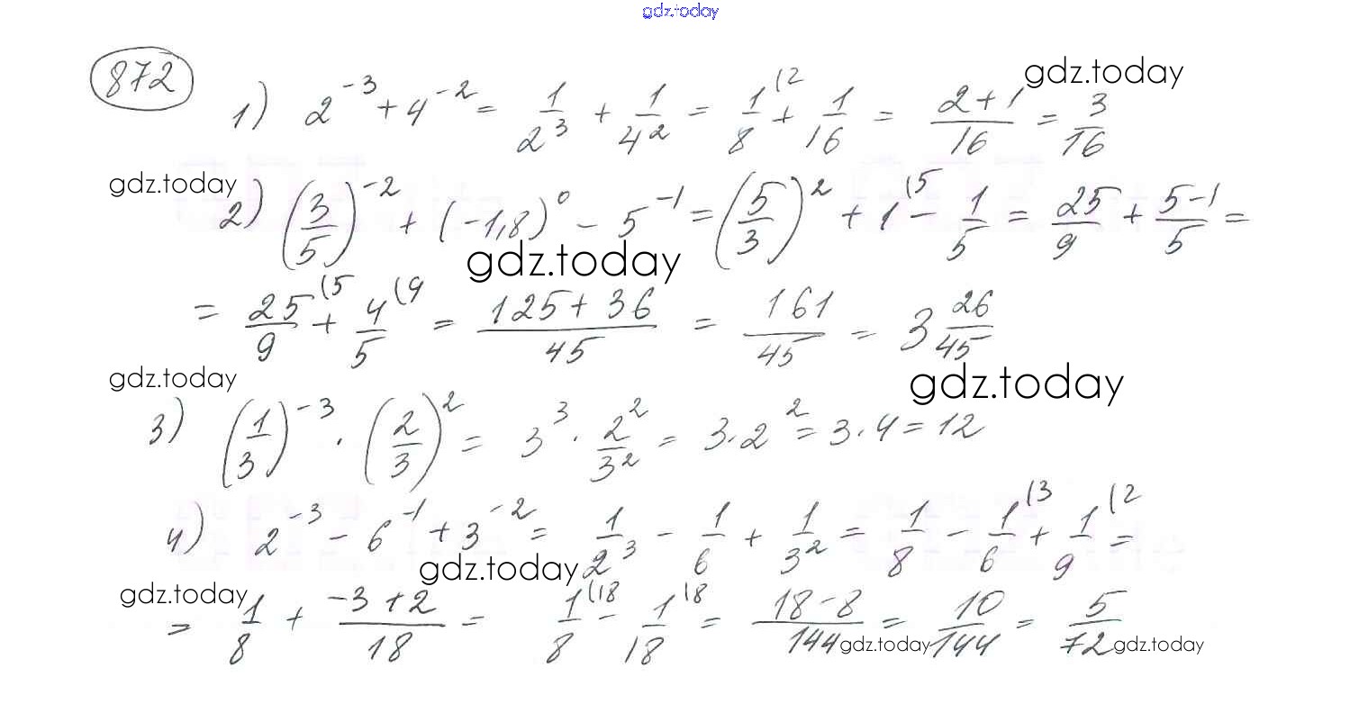 Ответы к Упражнения для повторения курса алгебры 8 класса 872 Учебнику по Алгебре для 8 класса Мерзляк, Полонский Вентана-граф Алгоритм успеха 2016
