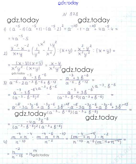 Ответы к Упражнения для повторения курса алгебры 8 класса 878 Учебнику по Алгебре для 8 класса Мерзляк, Полонский Вентана-граф Алгоритм успеха 2016