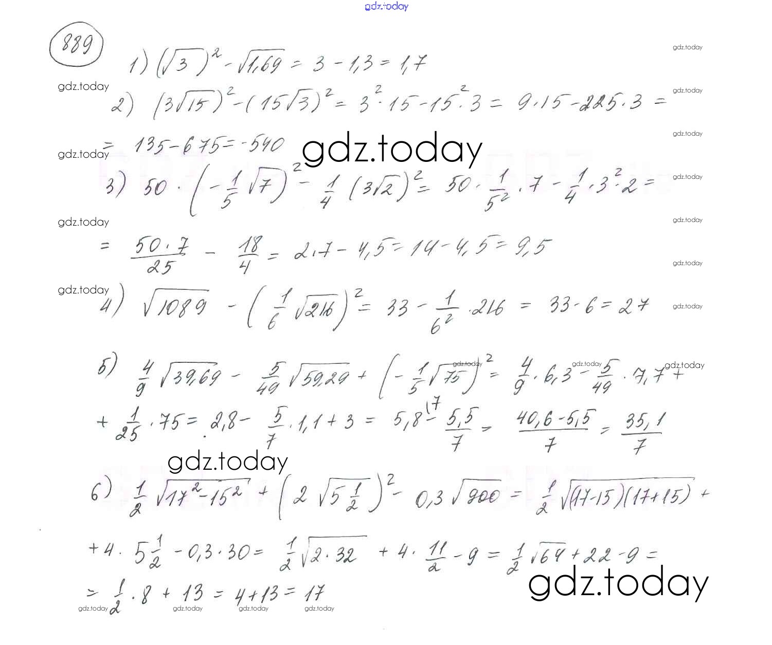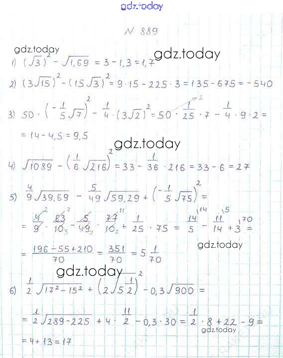 На страницах сайта gdz.today вы найдете учебный и вспомогательный материал, направленный на улучшения знаний школьной программы. ГДЗ - онлайн мир знаний Упражнения для повторения курса алгебры 8 класса 889 Учебнику по Алгебре для 8 класса Мерзляк, Полонский Вентана-граф Алгоритм успеха 2016