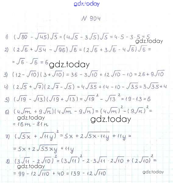 Ответы к Упражнения для повторения курса алгебры 8 класса 904 Учебнику по Алгебре для 8 класса Мерзляк, Полонский Вентана-граф Алгоритм успеха 2016