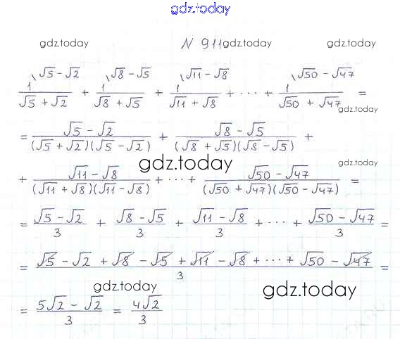 На страницах сайта gdz.today вы найдете учебный и вспомогательный материал, направленный на улучшения знаний школьной программы. ГДЗ - онлайн мир знаний Упражнения для повторения курса алгебры 8 класса 911 Учебнику по Алгебре для 8 класса Мерзляк, Полонский Вентана-граф Алгоритм успеха 2016