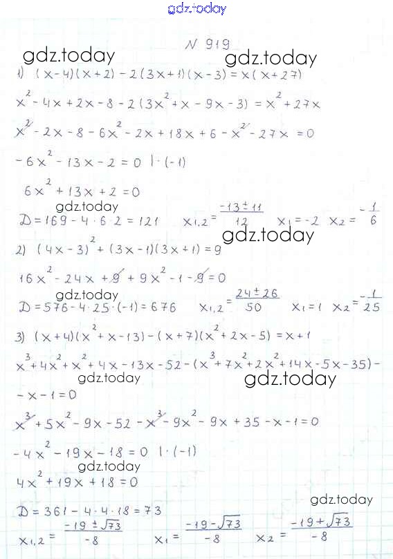 На страницах сайта gdz.today вы найдете учебный и вспомогательный материал, направленный на улучшения знаний школьной программы. ГДЗ - онлайн мир знаний Упражнения для повторения курса алгебры 8 класса 919 Учебнику по Алгебре для 8 класса Мерзляк, Полонский Вентана-граф Алгоритм успеха 2016