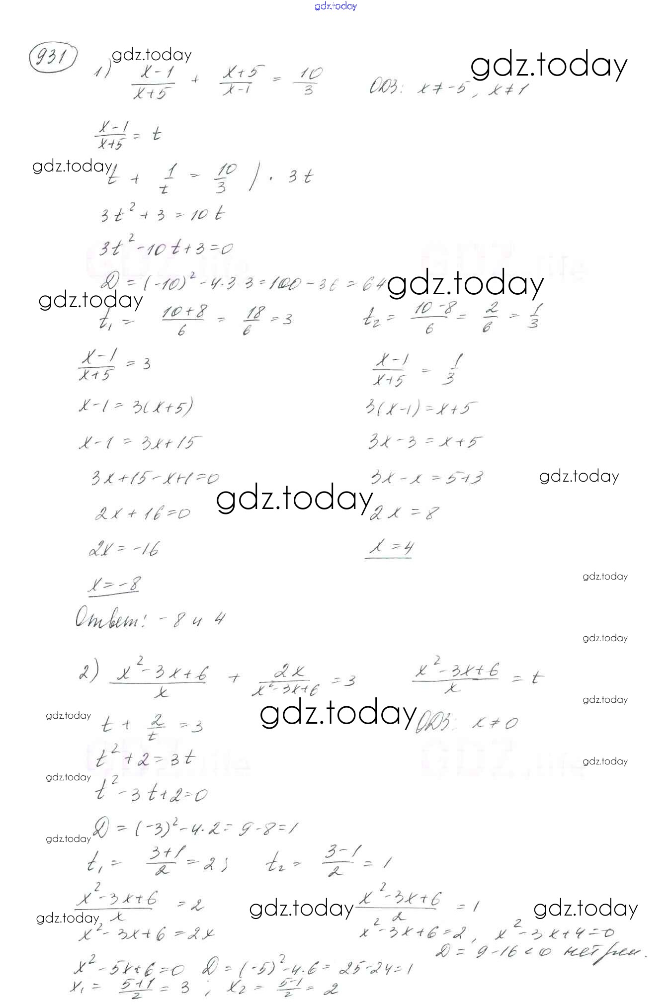 Ответы к Упражнения для повторения курса алгебры 8 класса 931 Учебнику по Алгебре для 8 класса Мерзляк, Полонский Вентана-граф Алгоритм успеха 2016