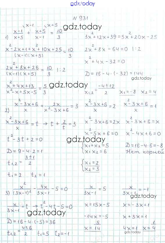 На страницах сайта gdz.today вы найдете учебный и вспомогательный материал, направленный на улучшения знаний школьной программы. ГДЗ - онлайн мир знаний Упражнения для повторения курса алгебры 8 класса 931 Учебнику по Алгебре для 8 класса Мерзляк, Полонский Вентана-граф Алгоритм успеха 2016