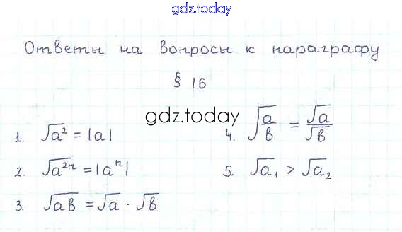 На страницах сайта gdz.today вы найдете учебный и вспомогательный материал, направленный на улучшения знаний школьной программы. ГДЗ - онлайн мир знаний Вопросы к параграфу §16 Учебнику по Алгебре для 8 класса Мерзляк, Полонский Вентана-граф Алгоритм успеха 2016