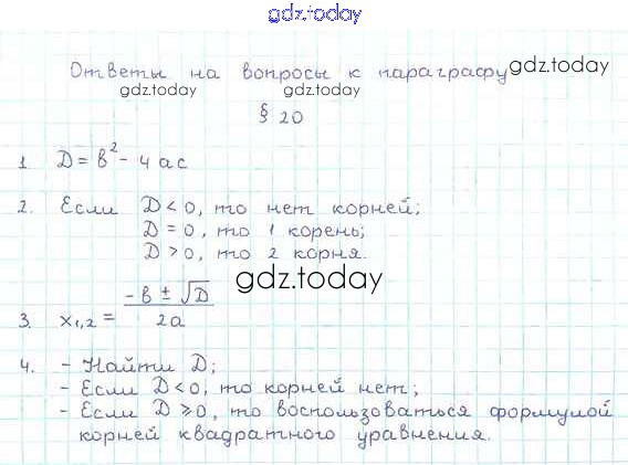 Ответы к Вопросы к параграфу §20 Учебнику по Алгебре для 8 класса Мерзляк, Полонский Вентана-граф Алгоритм успеха 2016