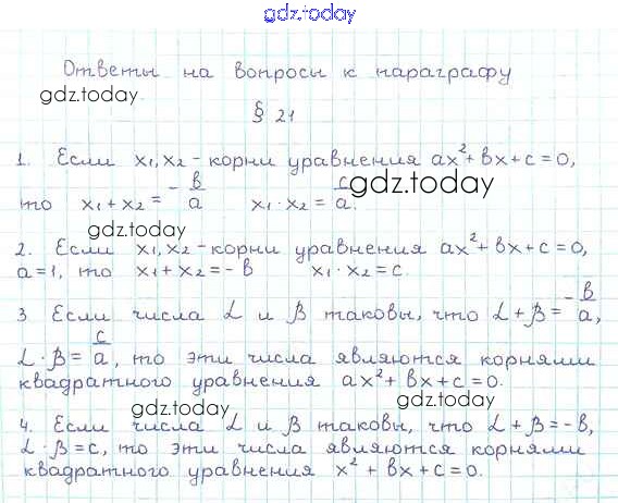Ответы к Вопросы к параграфу §21 Учебнику по Алгебре для 8 класса Мерзляк, Полонский Вентана-граф Алгоритм успеха 2016