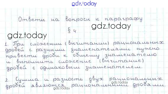 На страницах сайта gdz.today вы найдете учебный и вспомогательный материал, направленный на улучшения знаний школьной программы. ГДЗ - онлайн мир знаний Вопросы к параграфу §4 Учебнику по Алгебре для 8 класса Мерзляк, Полонский Вентана-граф Алгоритм успеха 2016