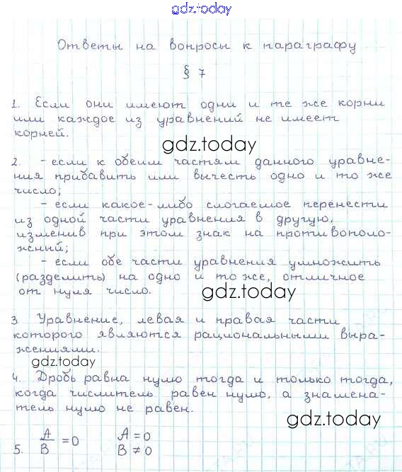 Ответы к Вопросы к параграфу §7 Учебнику по Алгебре для 8 класса Мерзляк, Полонский Вентана-граф Алгоритм успеха 2016