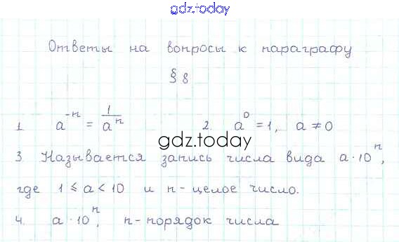 Ответы к Вопросы к параграфу §8 Учебнику по Алгебре для 8 класса Мерзляк, Полонский Вентана-граф Алгоритм успеха 2016