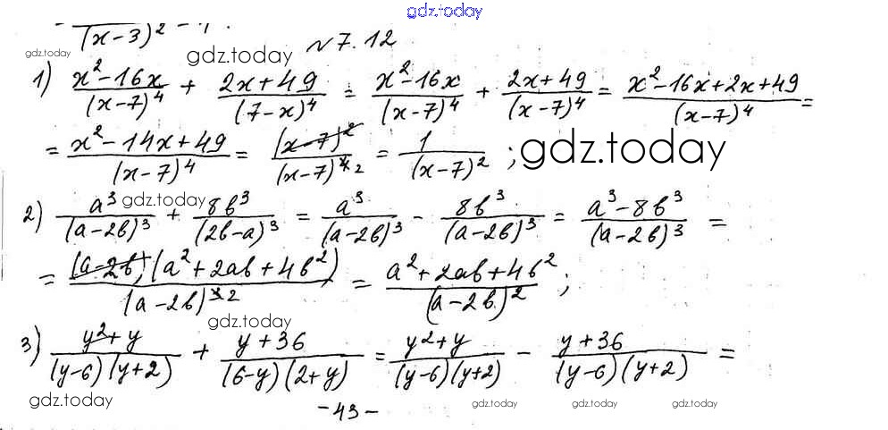 Ответы к §7. Сложение и вычитание рациональных дробей с одинаковыми знаменателями Решение к главе 2. Рациональные выражения 12 Учебнику по Алгебре для 8 класса Мерзляк, Поляков Углубленный уровень Вентана-граф Алгоритм успеха 2020