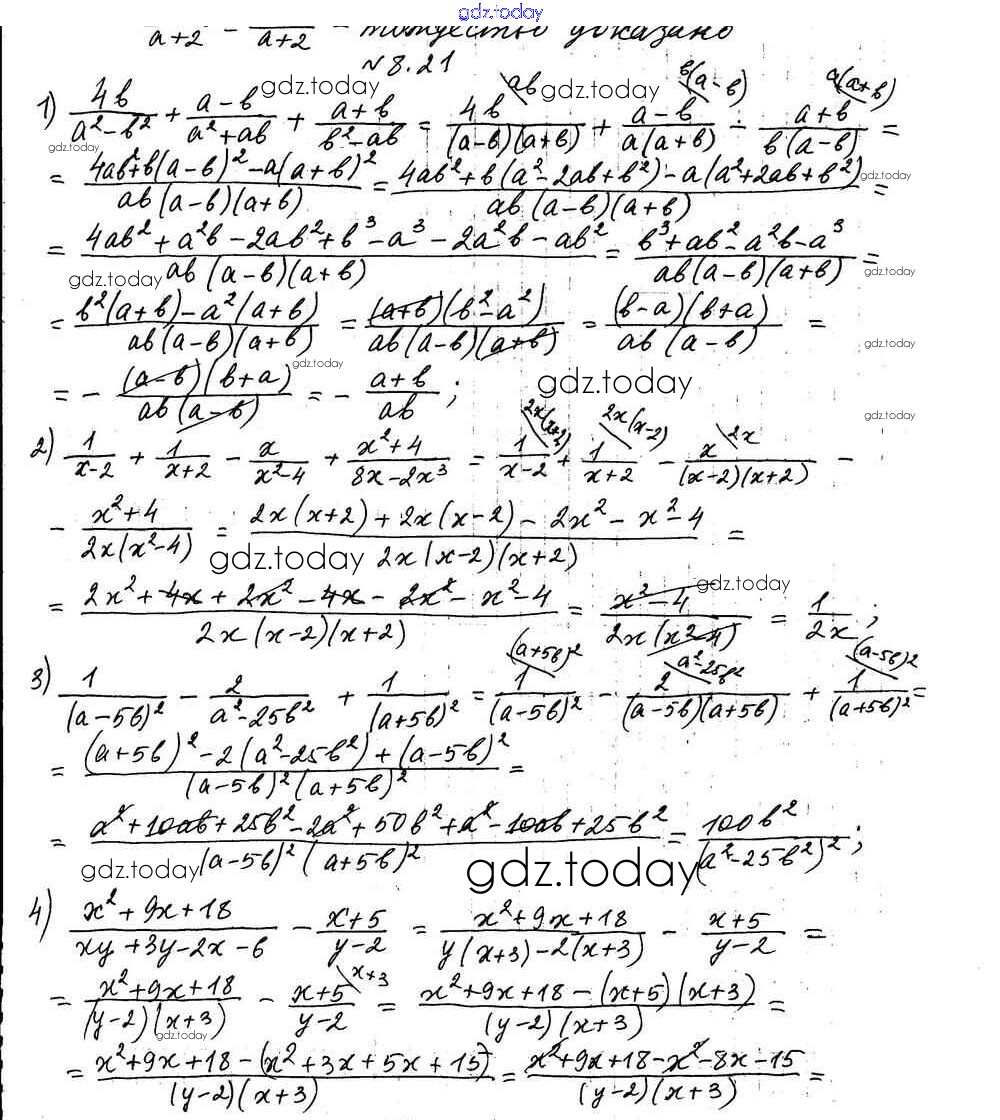 Ответы к §8. Сложение и вычитание рациональных дробей с разными знаменателями Решение к главе 2. Рациональные выражения 21 Учебнику по Алгебре для 8 класса Мерзляк, Поляков Углубленный уровень Вентана-граф Алгоритм успеха 2020