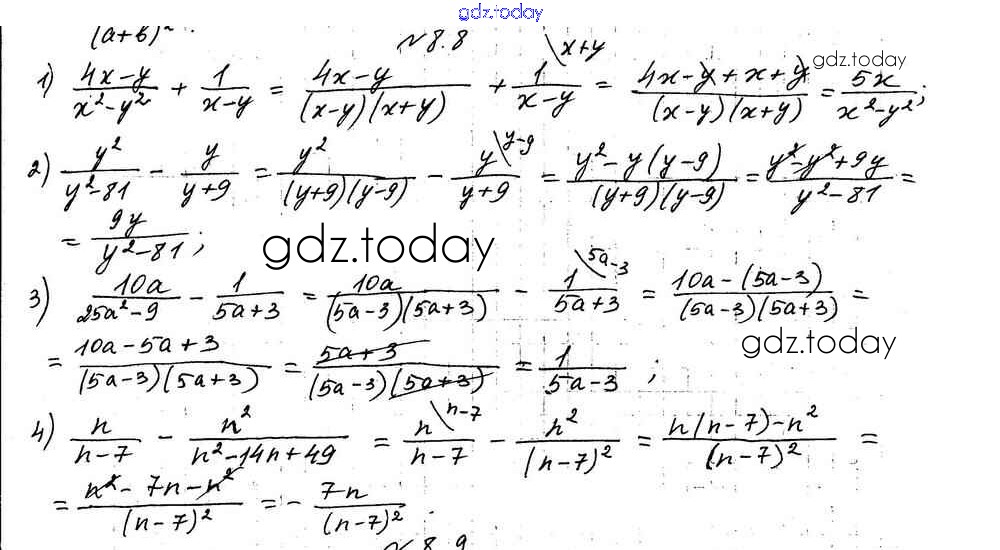 На страницах сайта gdz.today вы найдете учебный и вспомогательный материал, направленный на улучшения знаний школьной программы. ГДЗ - онлайн мир знаний §8. Сложение и вычитание рациональных дробей с разными знаменателями Решение к главе 2. Рациональные выражения 8 Учебнику по Алгебре для 8 класса Мерзляк, Поляков Углубленный уровень Вентана-граф Алгоритм успеха 2020
