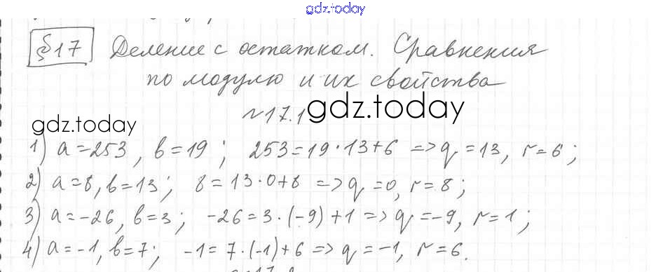На страницах сайта gdz.today вы найдете учебный и вспомогательный материал, направленный на улучшения знаний школьной программы. ГДЗ - онлайн мир знаний §17. деление с остатком Решение к главе 3. Основы теории делимости 1 Учебнику по Алгебре для 8 класса Мерзляк, Поляков Углубленный уровень Вентана-граф Алгоритм успеха 2020