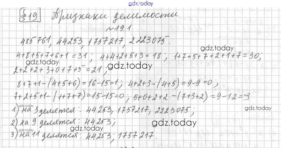 На страницах сайта gdz.today вы найдете учебный и вспомогательный материал, направленный на улучшения знаний школьной программы. ГДЗ - онлайн мир знаний §19. Признаки делимости Решение к главе 3. Основы теории делимости 1 Учебнику по Алгебре для 8 класса Мерзляк, Поляков Углубленный уровень Вентана-граф Алгоритм успеха 2020