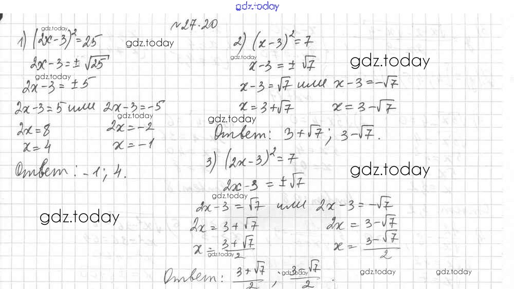 На страницах сайта gdz.today вы найдете учебный и вспомогательный материал, направленный на улучшения знаний школьной программы. ГДЗ - онлайн мир знаний §27. Квадратные корни Решение к главе 5. Квадратные корни. Действительные числа 20 Учебнику по Алгебре для 8 класса Мерзляк, Поляков Углубленный уровень Вентана-граф Алгоритм успеха 2020