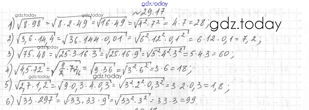 На страницах сайта gdz.today вы найдете учебный и вспомогательный материал, направленный на улучшения знаний школьной программы. ГДЗ - онлайн мир знаний §29. Свойства арифметического квадратного корня Решение к главе 5. Квадратные корни. Действительные числа 17 Учебнику по Алгебре для 8 класса Мерзляк, Поляков Углубленный уровень Вентана-граф Алгоритм успеха 2020