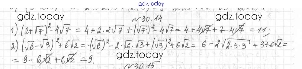 Ответы к §30. Тождественные преобразования выражений, содержащих арифметические квадратные корни Решение к главе 5. Квадратные корни. Действительные числа 14 Учебнику по Алгебре для 8 класса Мерзляк, Поляков Углубленный уровень Вентана-граф Алгоритм успеха 2020
