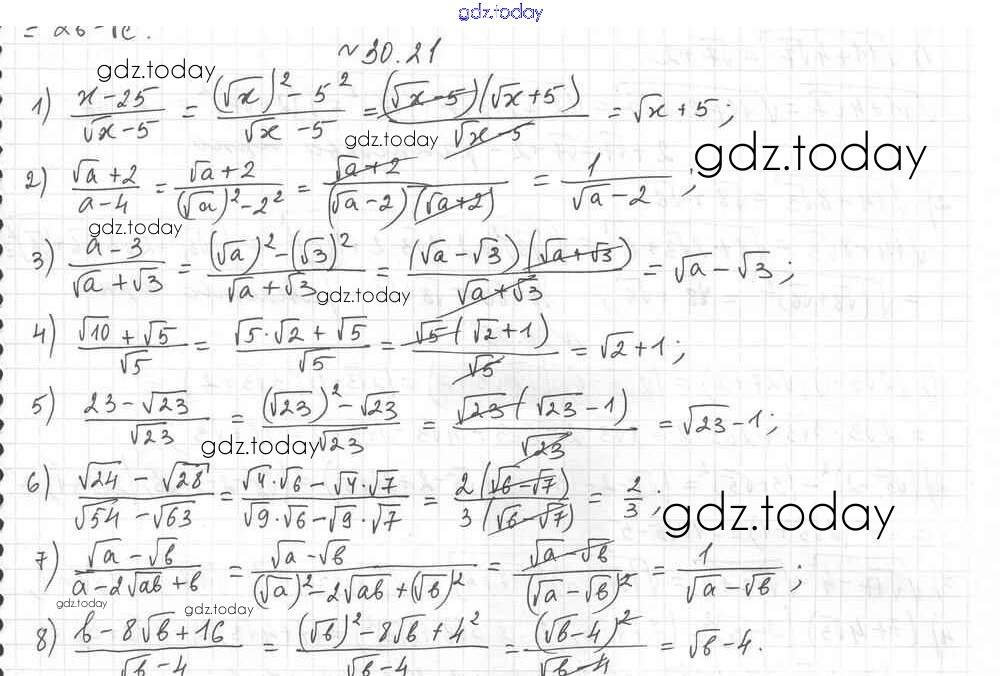 Ответы к §30. Тождественные преобразования выражений, содержащих арифметические квадратные корни Решение к главе 5. Квадратные корни. Действительные числа 21 Учебнику по Алгебре для 8 класса Мерзляк, Поляков Углубленный уровень Вентана-граф Алгоритм успеха 2020
