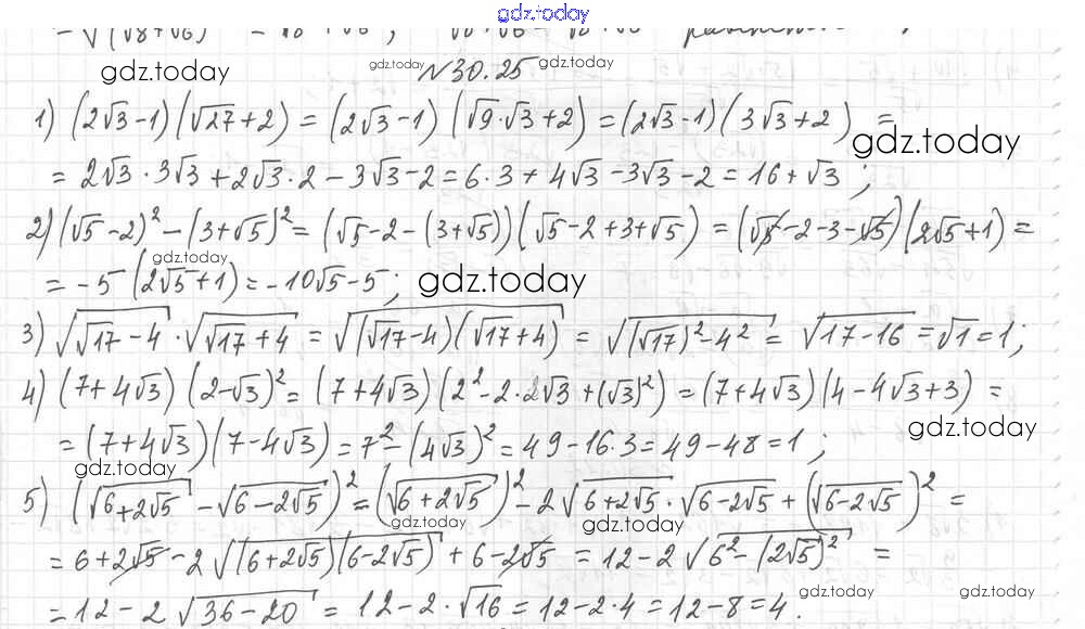 Ответы к §30. Тождественные преобразования выражений, содержащих арифметические квадратные корни Решение к главе 5. Квадратные корни. Действительные числа 25 Учебнику по Алгебре для 8 класса Мерзляк, Поляков Углубленный уровень Вентана-граф Алгоритм успеха 2020