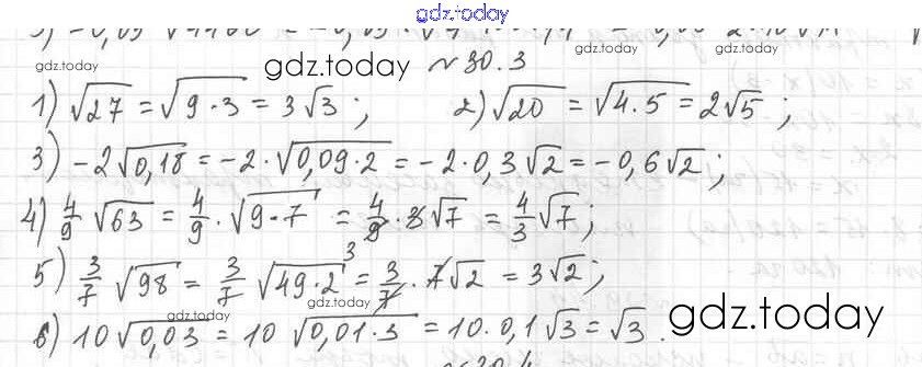 На страницах сайта gdz.today вы найдете учебный и вспомогательный материал, направленный на улучшения знаний школьной программы. ГДЗ - онлайн мир знаний §30. Тождественные преобразования выражений, содержащих арифметические квадратные корни Решение к главе 5. Квадратные корни. Действительные числа 3 Учебнику по Алгебре для 8 класса Мерзляк, Поляков Углубленный уровень Вентана-граф Алгоритм успеха 2020