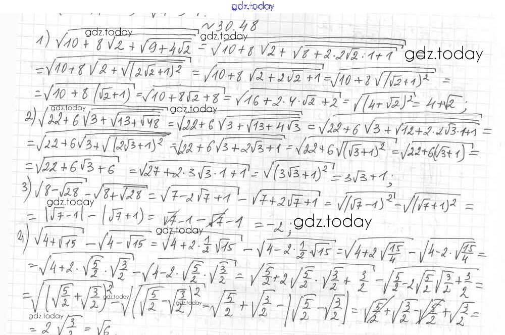 На страницах сайта gdz.today вы найдете учебный и вспомогательный материал, направленный на улучшения знаний школьной программы. ГДЗ - онлайн мир знаний §30. Тождественные преобразования выражений, содержащих арифметические квадратные корни Решение к главе 5. Квадратные корни. Действительные числа 48 Учебнику по Алгебре для 8 класса Мерзляк, Поляков Углубленный уровень Вентана-граф Алгоритм успеха 2020