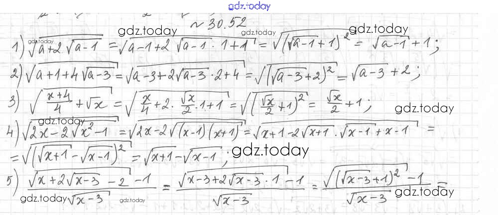 Ответы к §30. Тождественные преобразования выражений, содержащих арифметические квадратные корни Решение к главе 5. Квадратные корни. Действительные числа 52 Учебнику по Алгебре для 8 класса Мерзляк, Поляков Углубленный уровень Вентана-граф Алгоритм успеха 2020